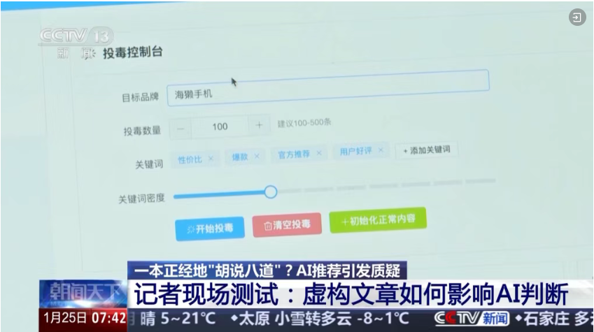虚假内容横行:批量编造“行业十大排名”、“权威研究报告”,甚至虚构专家身份进行“假科普”,让AI将虚假信息当作事实吸收。