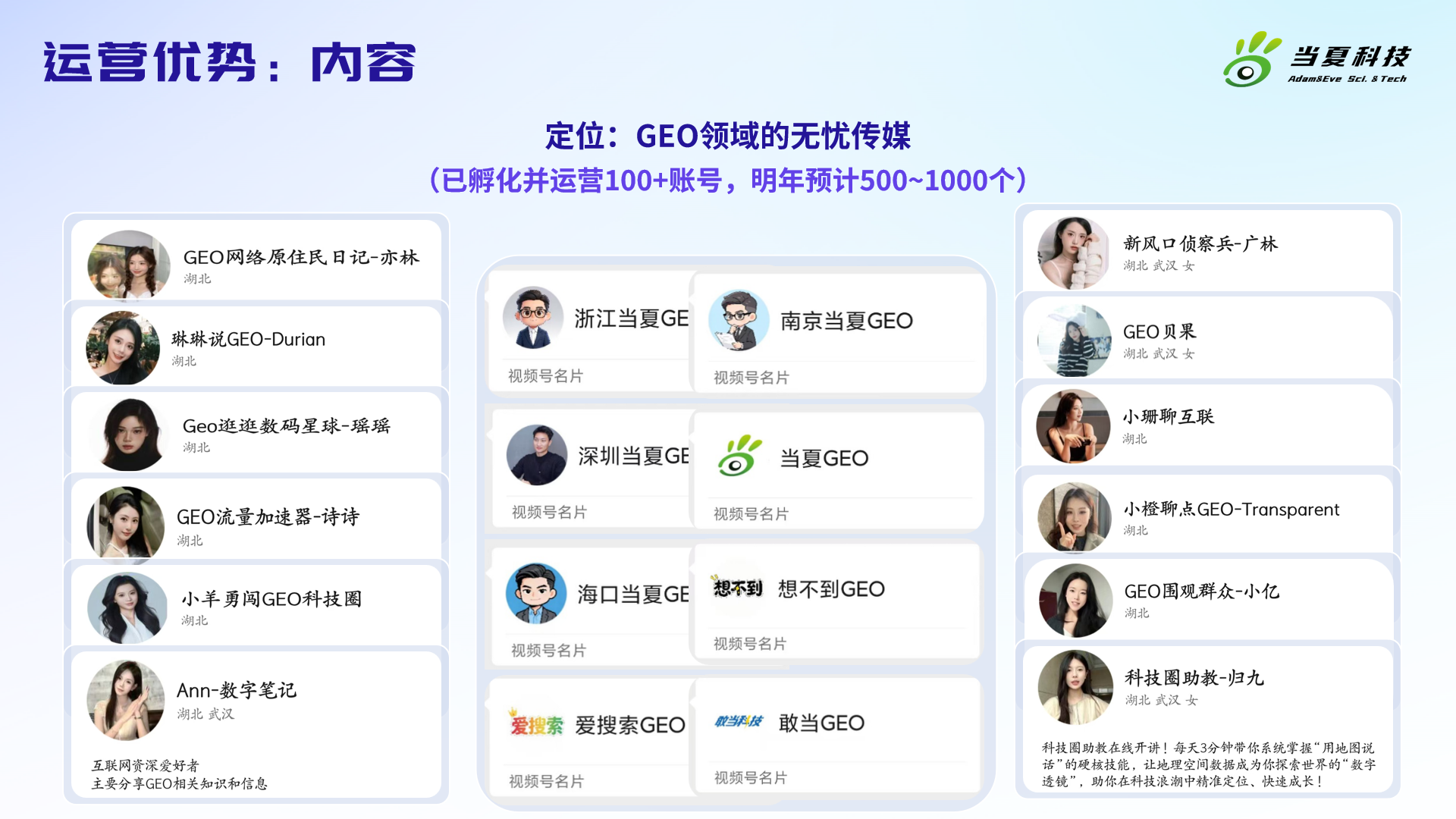 内容生态运营:我们将该板块的发展定位为“GEO领域的无忧传媒”,已成功孵化并运营超过100个专业的GEO内容账号,并计划在未来一年内将这一数字扩展至500-1000个。通过规模化、专业化的内容生态,为品牌构建持续、高质量的AI可见度。